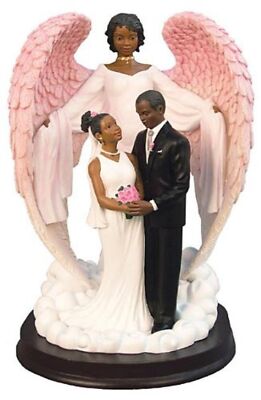 African American Wedding Guardian Angel with Bride and Groom Couple Figurine